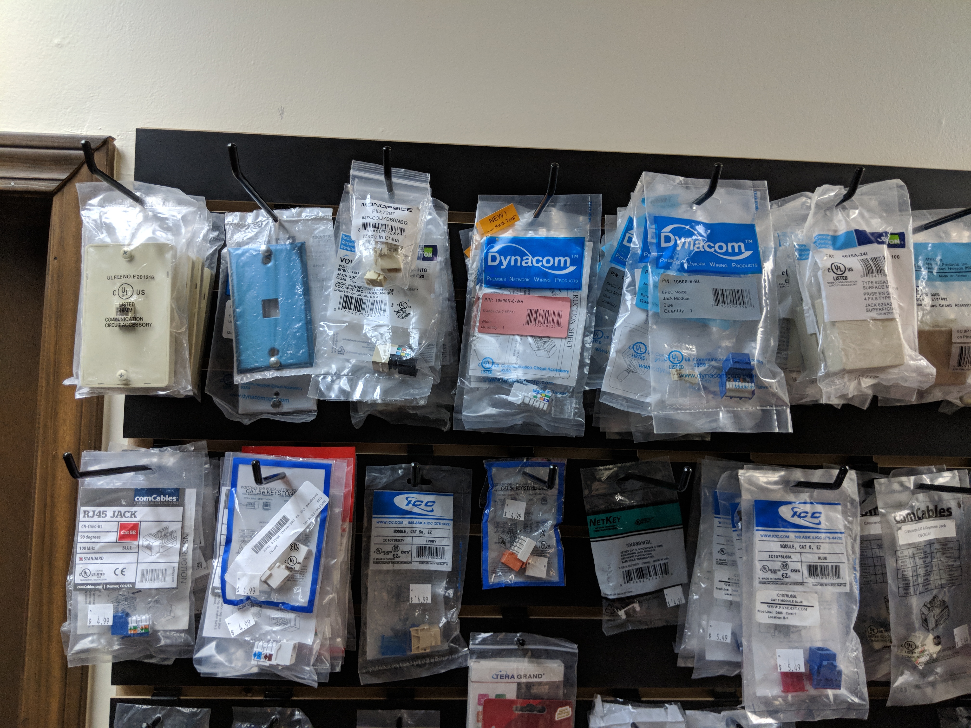 Fireytech keeps the largest in-stock selection of data jacks, keystones, patch cables, wall plates, 66-blocks, phone supplies, and cable management items in the Tulsa area. Perfect for DIY network installs or quick repairs—no waiting on shipping!